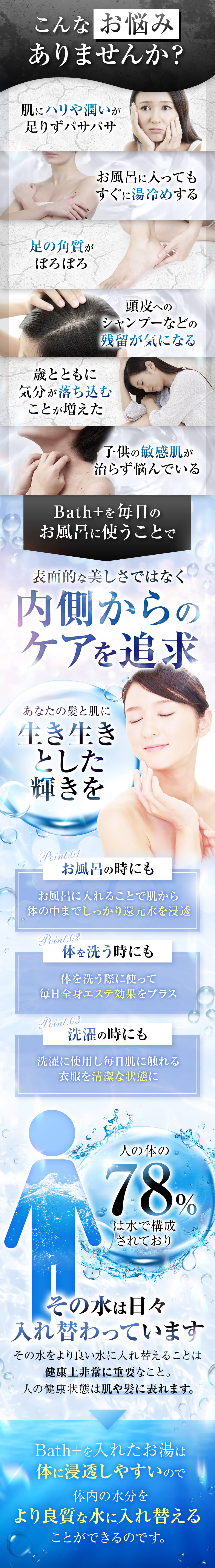 Bath+を毎日のお風呂に使うことで、表面的な美しさではなく内側からのケアを追求